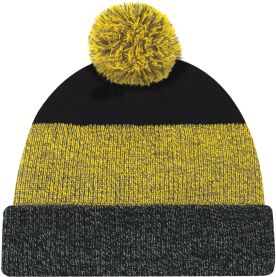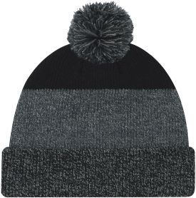 Marl rib knit Acrylic Cuff Toque with Pom Pom