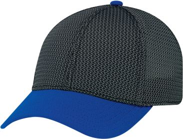 This 6 Panel deluxe polyester mesh back constructed contour (A-Class) cap comes with deluxe buckram laminated front panels with complete Pro-Stitch and pre-curved peak with 6 rows of stitching and a plastic adjustable back strap.