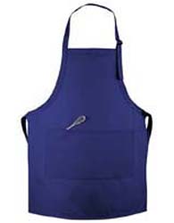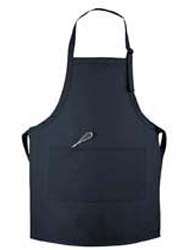 Twill Imported Bib Apron, 2 Pockets is an all-purpose apron for work, play or in-store presentations with an adjustable neck band and split-pocket pouch. Made from 7.5 oz Iron Free Twill (65% Polyester / 35% Cotton). Size 25" x 28"L ; 8" x 8" (pocket)