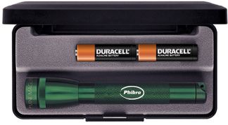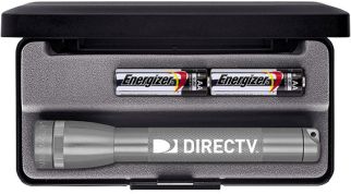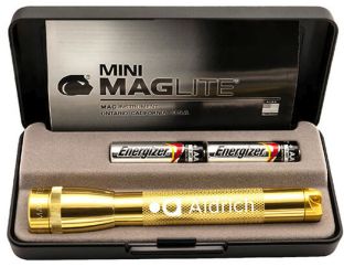 Classic Mini Maglite is 5 3/4" in length. Comes with 2 “AA” batteries and packaged in a sleek, black presentation box. Shines up to 70 times brighter than flashlights with comparable battery resources. Beam adjusts from spot to flood with the turn of the head.
