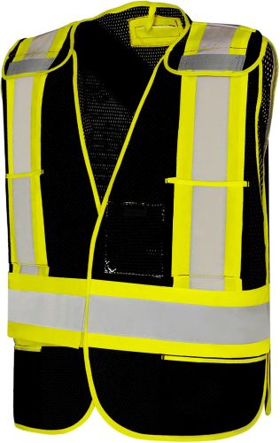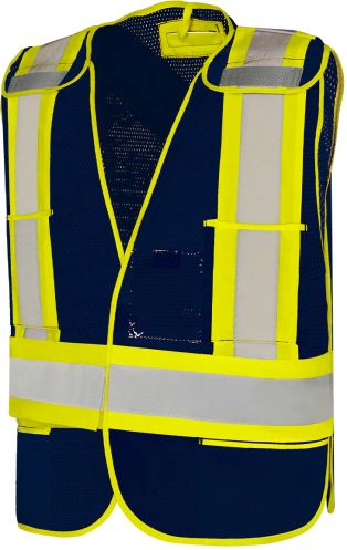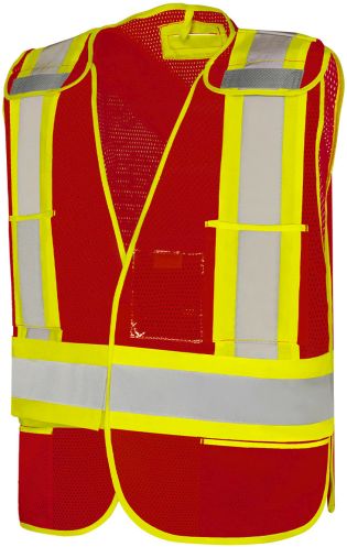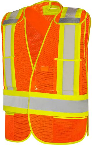 This 5 Pt Traffic vest is made with breathable HI-VIS Polyester mesh fabric and comes with 4” contrasting colour tape with 2” reflective silver tape on front, back and waist provides increased visibility. Has Five exterior pockets. Complies with CSA Z96-15 ANSI/ISEA 107-2020 Class 2 Level 2 (TV1OU, TV1YU). Complies with CSA Z96-15 ANSI/ISEA 107-2020 Class 1 Level 2 (TV1RU, TV1KU, TV1NU)