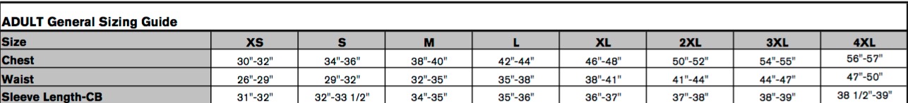 Sizes: Adult XSmall to XL, Oversizes Available (Size Chart)