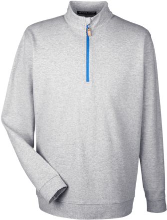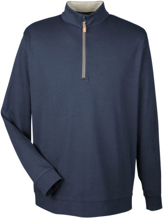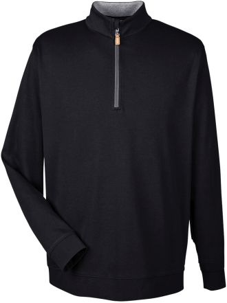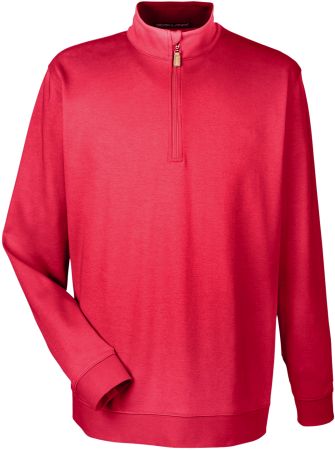 Devon & Jones Men's DRYTEC20™ Performance Quarter-Zip is an active fit design with self fabric inside placket with chin guard and inner collar in contrast self fabric and center front coil zipper with autolock slider and faux leather pull plus rib-knit cuffs and bottom opening.