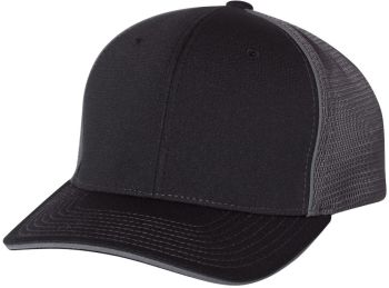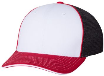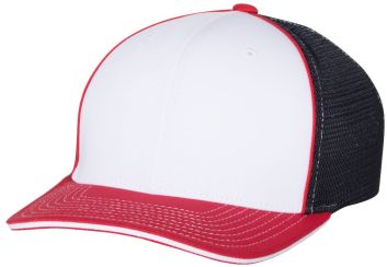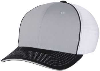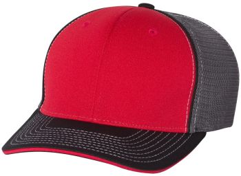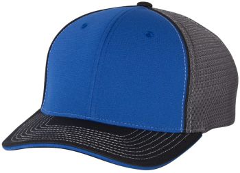 Fitted Pulse sport mesh. 98/2 polyester/spandex, structured, six-panel, mid-profile cap with R-Flex with precurved contrast stitched sandwich visor