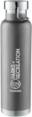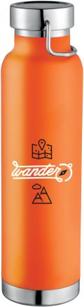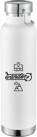 The Thor Copper is a durable, double-wall stainless steel vacuum construction with copper insulation, which allows your beverage to stay cold for 48 hours and hot for at least 12 hours. The construction also prevents condensation on the outside of the bottle. On-trend, durable powder coating. Stainless steel screw-on, spill resistant lid with durable stainless steel hand loop. 22oz.