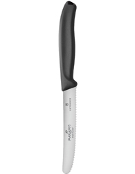 This Swiss made Utility Knife has a 4 1/2-inch, rounded tip and serrated blade. Great for cutting fruits, chopping vegetables, or slicing meats and never compromise the sharpness of its stainless steel blade. A necessity in every kitchen. The perfect tool for all small cutting jobs.