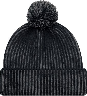 Acrylic Cuff Toque with Flat Seams and Pom Poms