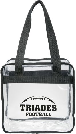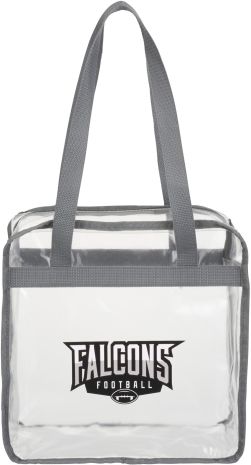 As part of Leed's Game Day Collection, this clear tote is perfect for fans packing their stadium and event day items safely. Also great for workplace and school safety. Zippered main compartment. Dual carry handles with 10" handle drop height. Note that if the bag is being carried into an NFL stadium, the NFL requires that logo sizes do not exceed 4.5" tall by 3.4" wide.