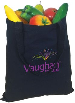 Cotton Tote made of 12 ounce cotton canvas with cross-stitched cotton webbed handles. 100% Natural cotton processed AZO-Free, with no hazardous chemicals. 14” W x 16” H
